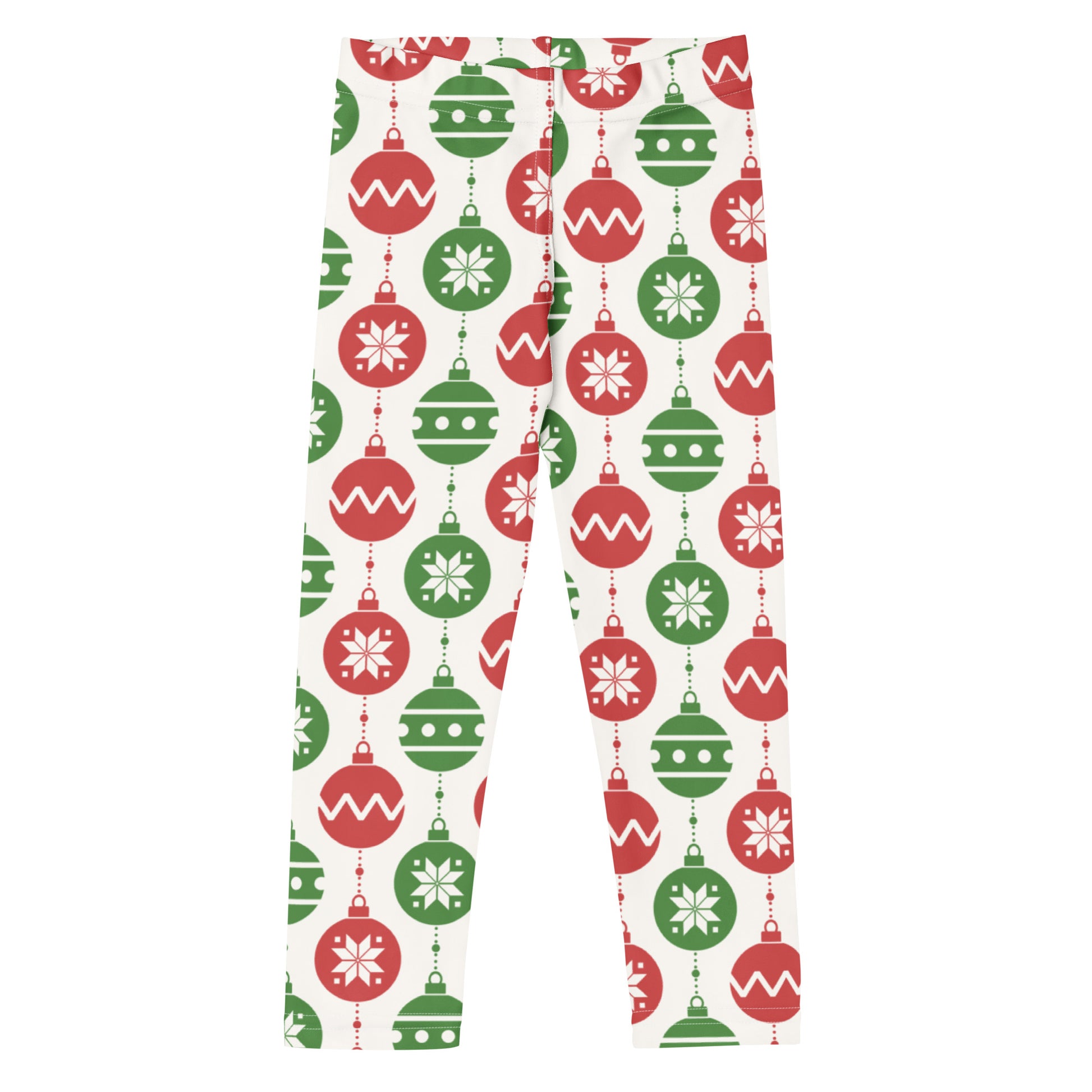 Kids Red and Green Christmas Ornament Buttery Soft Leggings