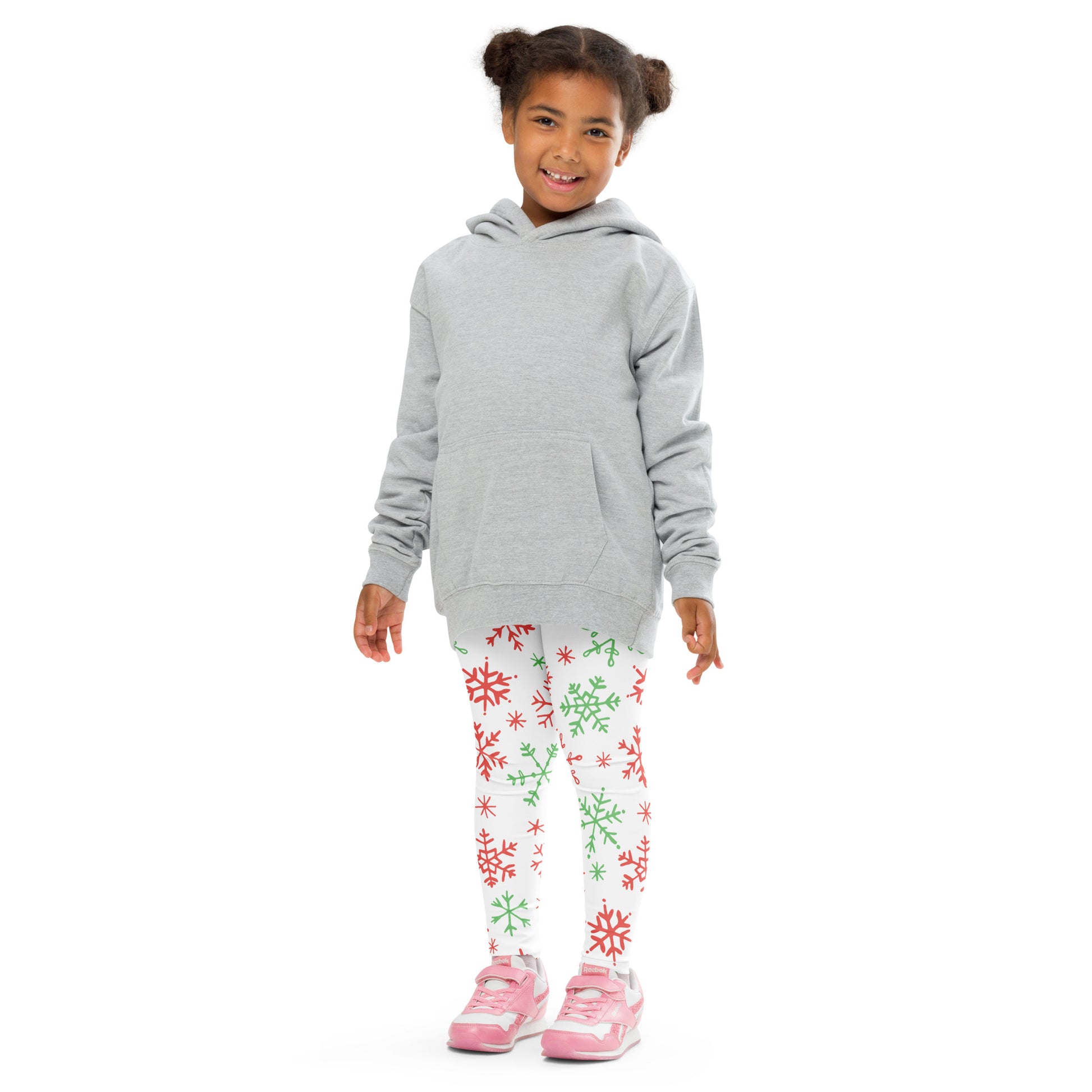 Add a flurry of fun to their wardrobe with these Kids Red and Green Snowflake Leggings! Featuring a crisp white background and delicate white snowflakes of all shapes and sizes, they’re perfect for snowy playdates, holiday outfits, or just lounging like it’s a snow day.