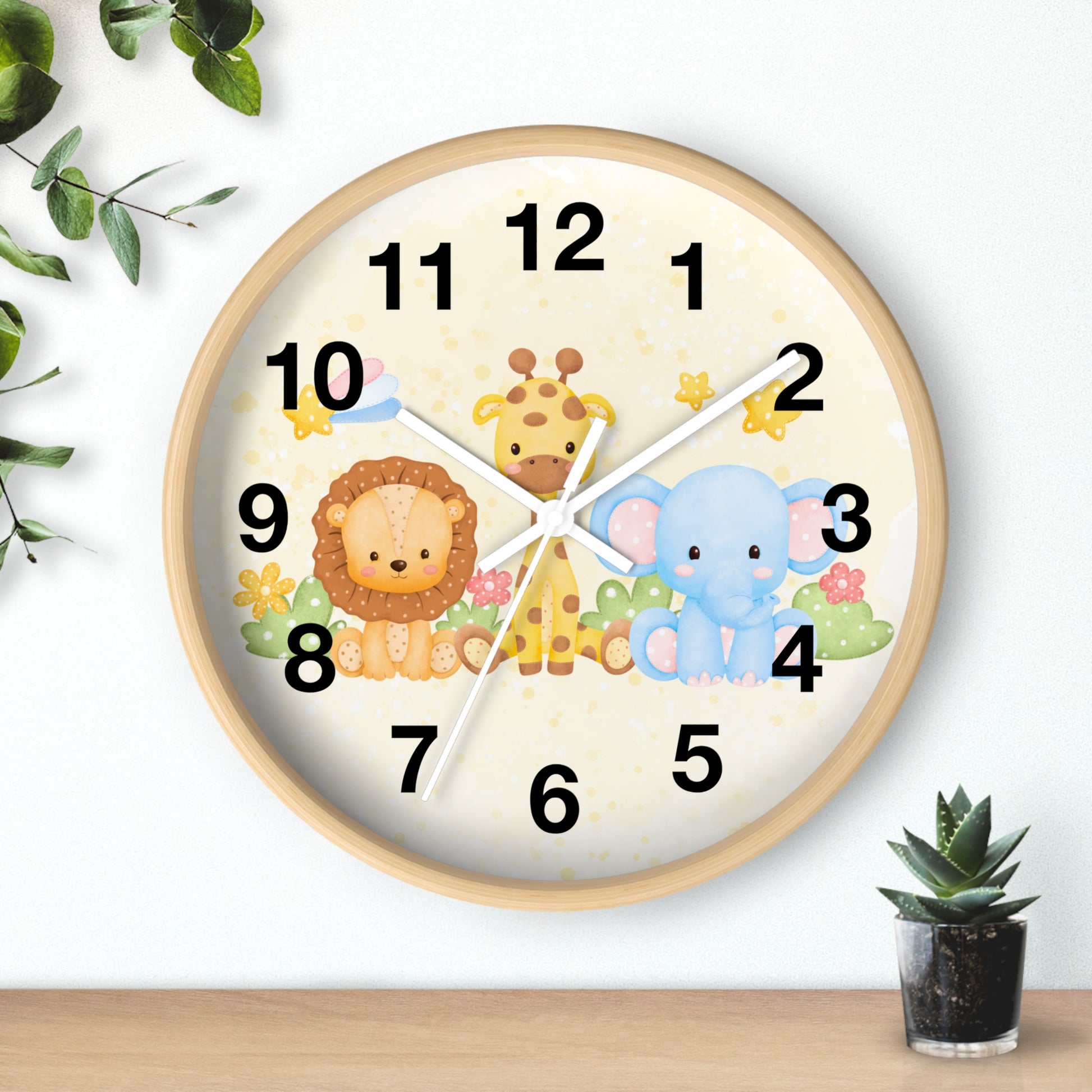 Add wild charm to your child’s space with our Kids' Jungle Animal Silent Wood Wall Clock, featuring an adorable lion, giraffe, and elephant trio set against a soft, pastel background. Perfect for safari-themed nurseries, toddler bedrooms, or playrooms, this sweet and playful clock helps little ones learn to tell time while brightening up their walls.