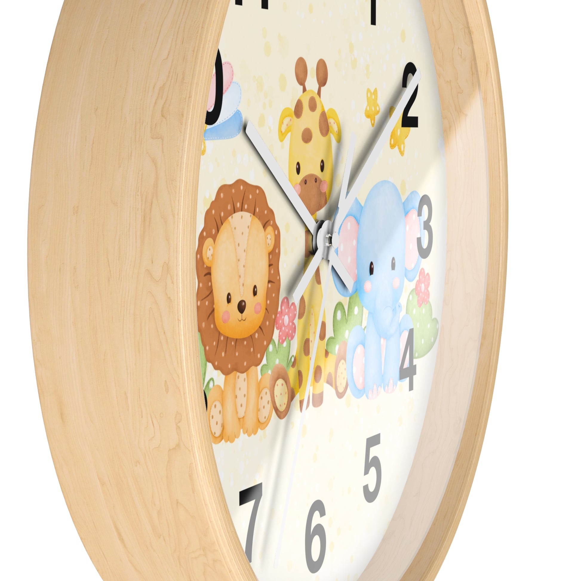 Kids Safari Animals Silent Wood Wall Clock