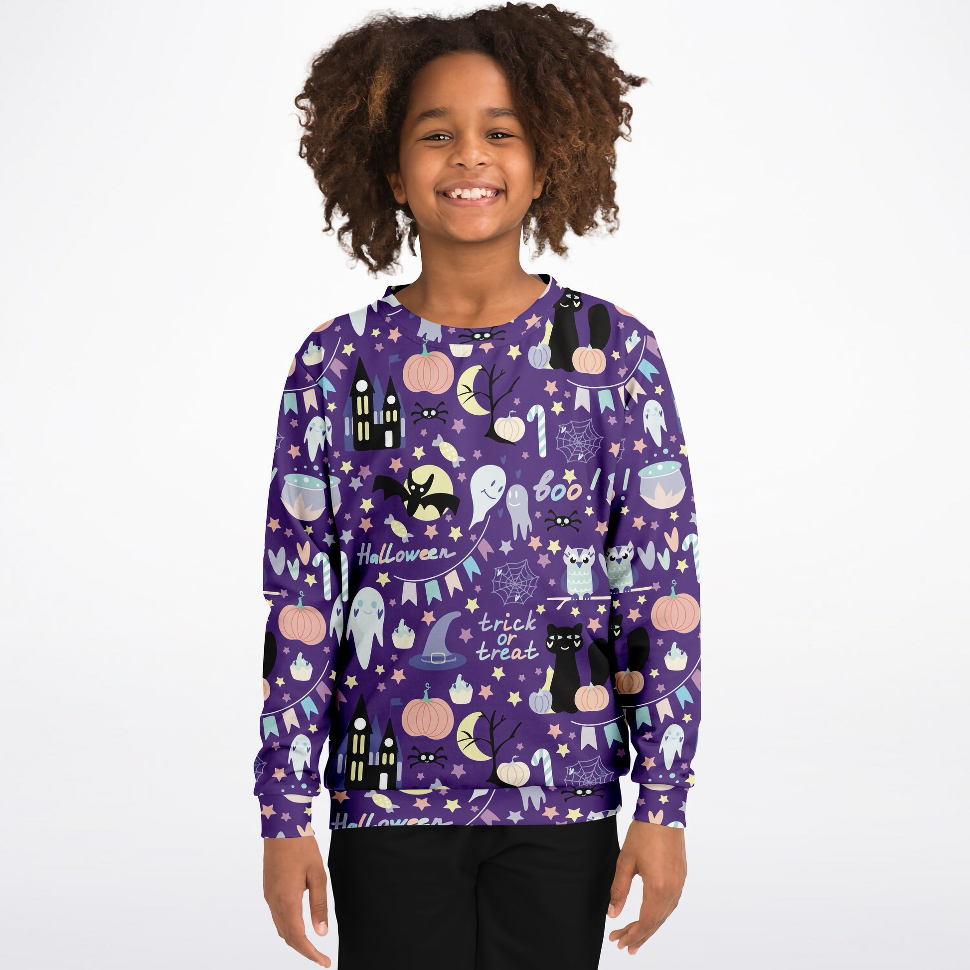 Kids Spooky Halloween Sweatshirt – Cozy Cotton Fleece or Lightweight Sports Fabric