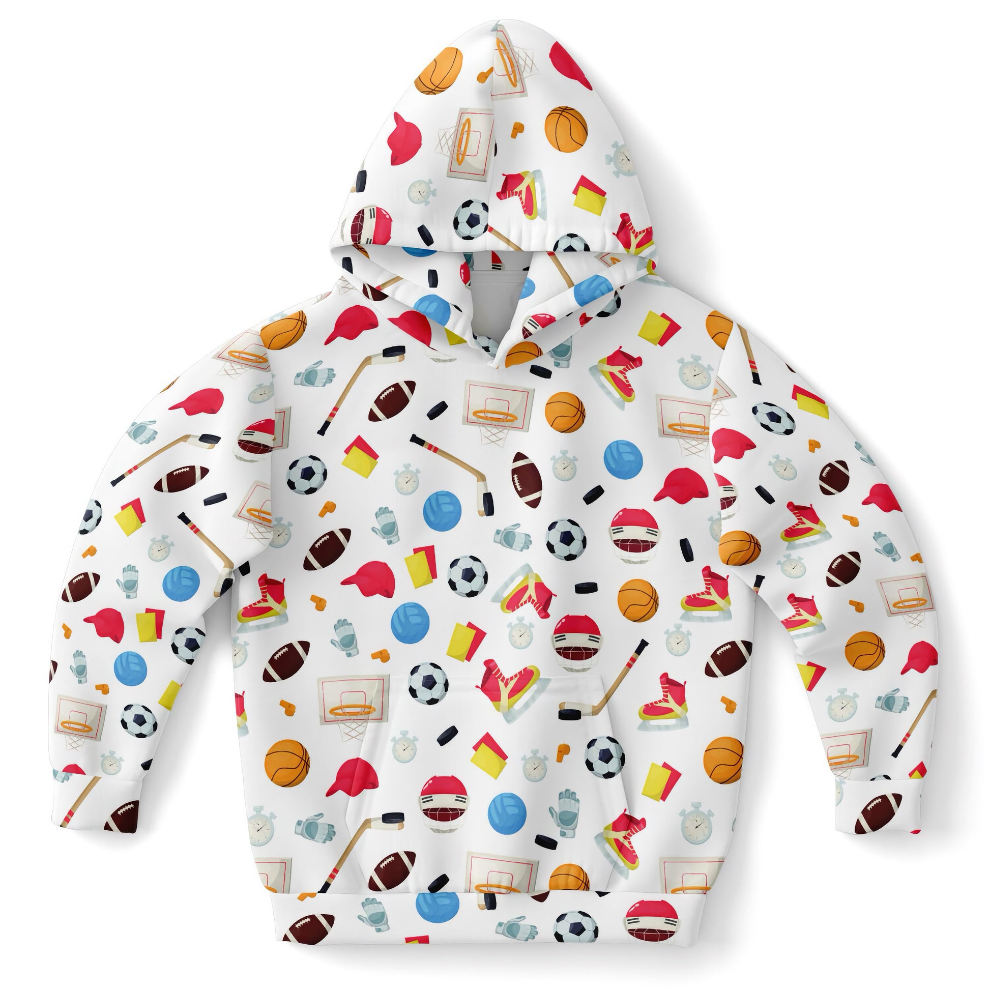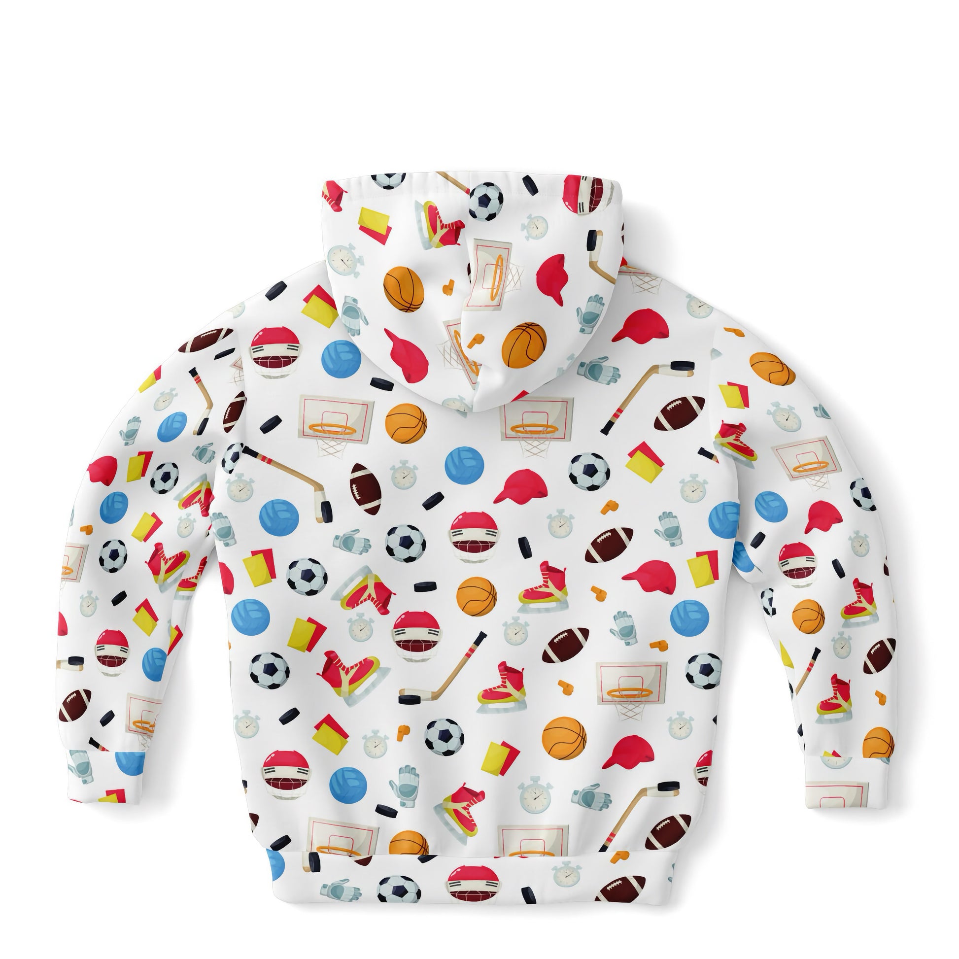 Kids Sports Themed Hoodie – Cozy Cotton Fleece or Lightweight Sports Fabric