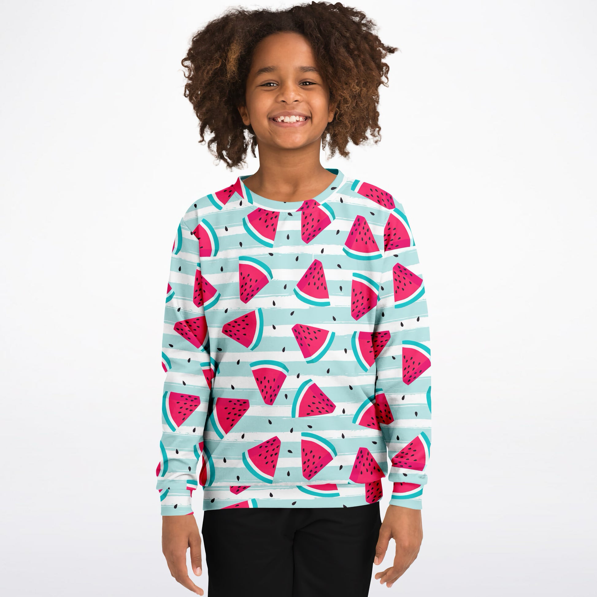 Kids Striped Watermelon Sweatshirt – Cozy Cotton Fleece or Lightweight Sports Fabric