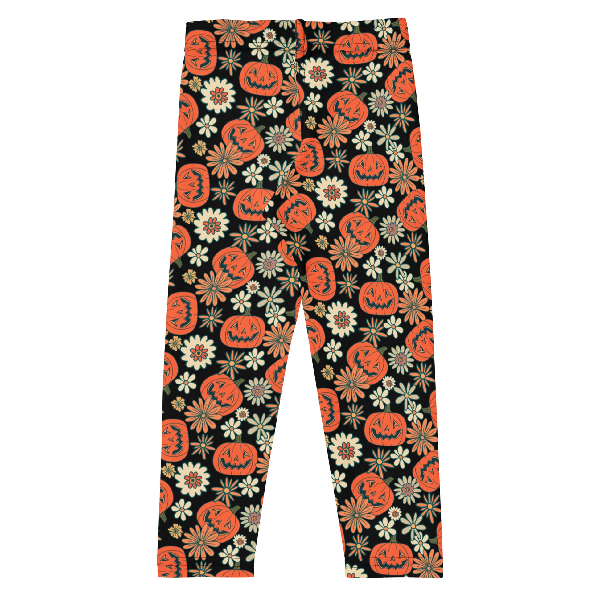 Kids Vintage Halloween Pumpkin Floral Buttery Soft Leggings
