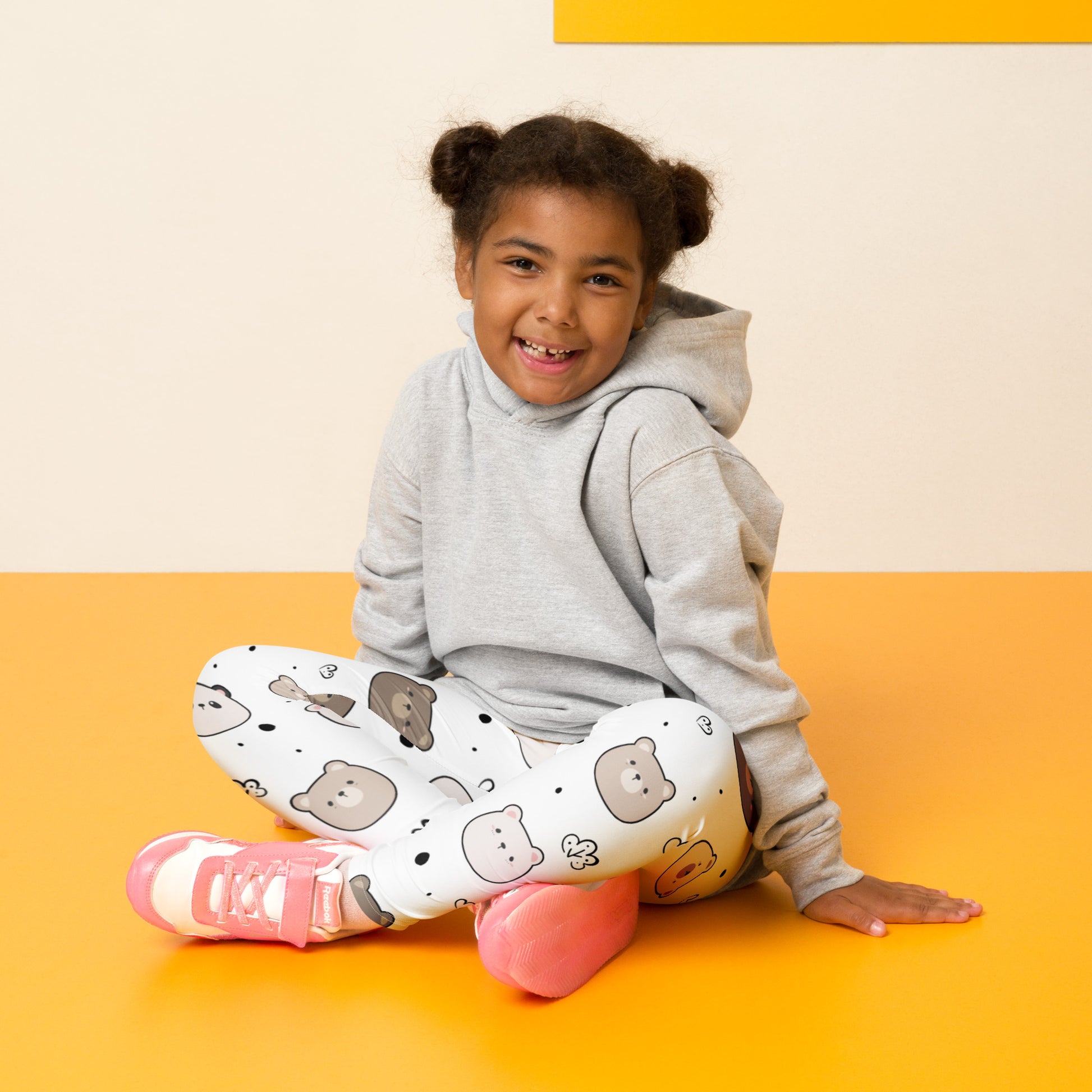 These adorable bear face leggings are a cozy-cute staple for any toddler or kid who loves animals. With a playful print featuring soft brown, black, and cream bear faces on a white background, these pants are easy to mix and match with tees, hoodies, or sweaters. Perfect for preschool, lounging, or playdates!