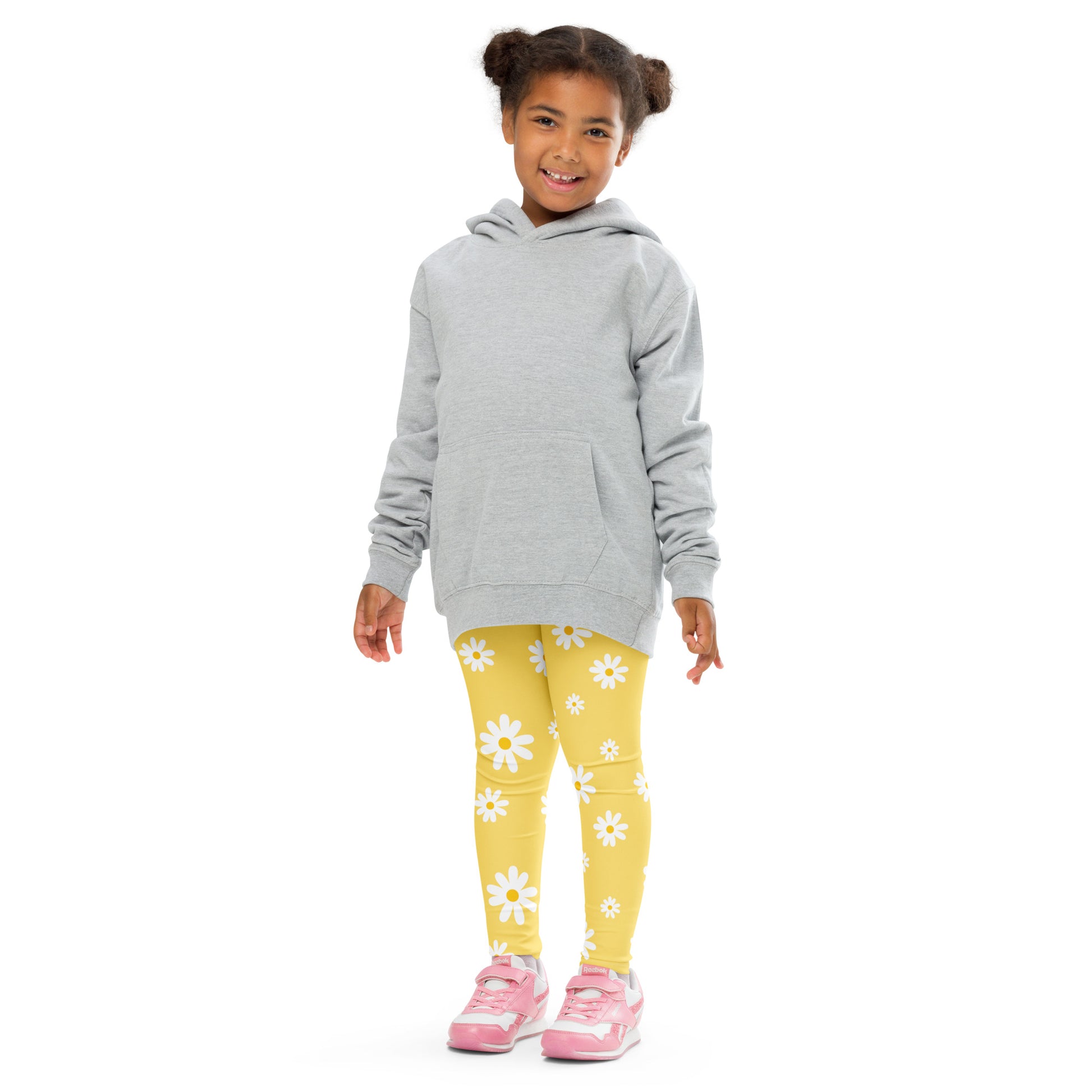 Brighten up any day with these sunny daisy leggings! Featuring a bold yellow background scattered with playful white daisies, these leggings are perfect for kids who love color, nature, or just want to stand out. They're made for movement—whether it’s playground adventures, school days, or lounging at home.