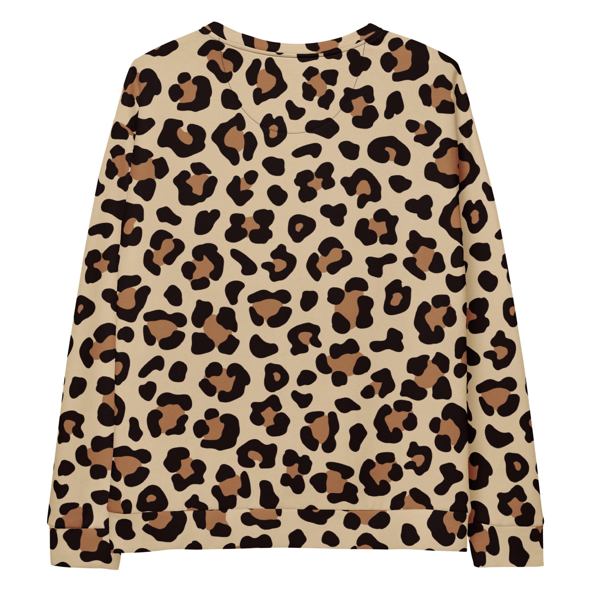 Step into bold style with our Leopard Print Sweatshirt, featuring a timeless all-over animal print in warm beige and brown tones. Designed for both comfort and durability, this eco-friendly pullover is made from recycled polyester with a brushed fleece lining that feels soft and cozy against the skin. Perfect for casual wear, layering, or making a statement in any season.