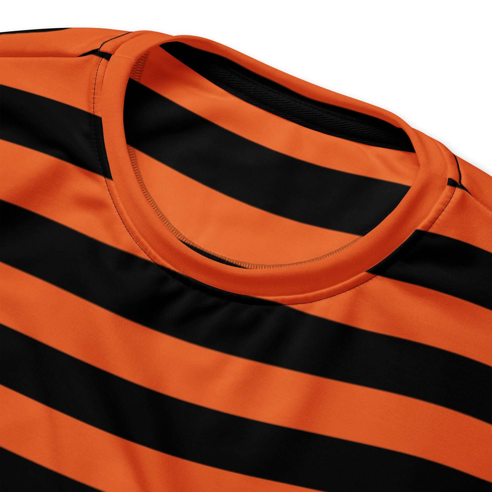 An eco-conscious pullover that blends festive Halloween vibes with timeless striped style.