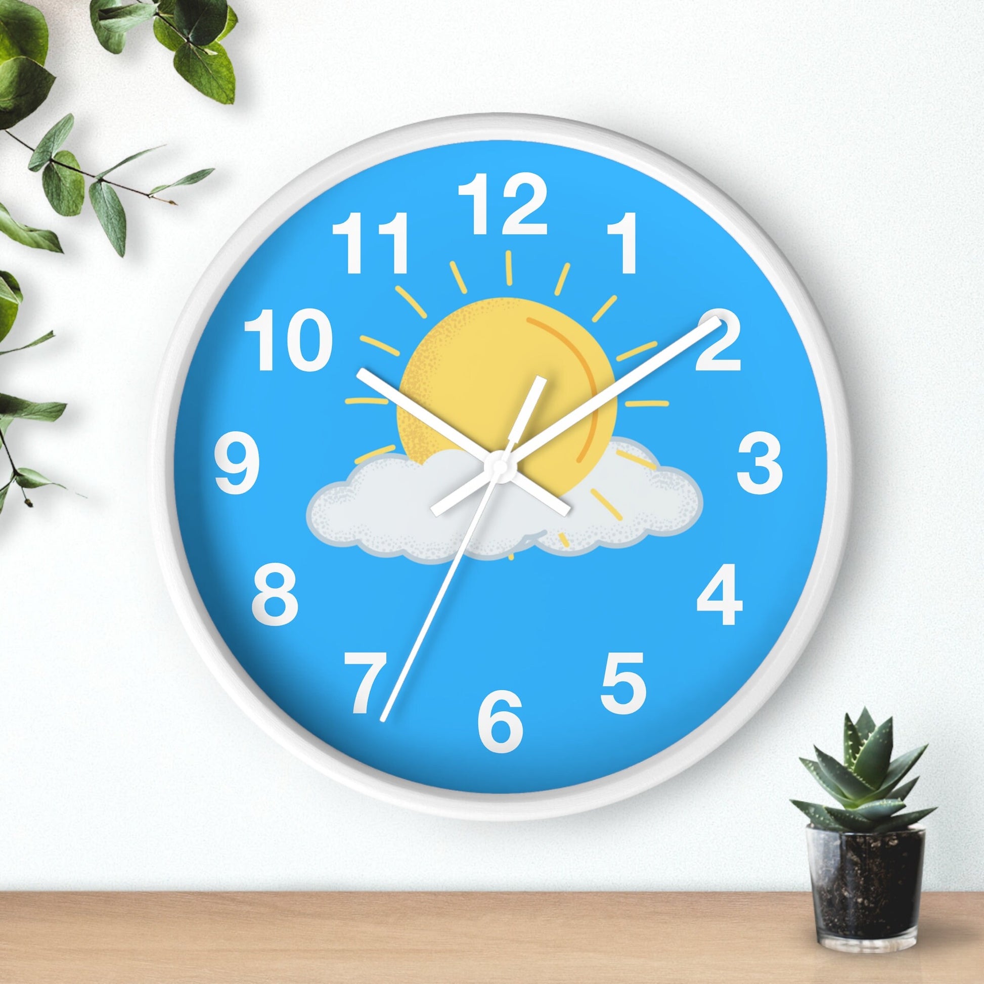 Ideal for kids’ room decor, nursery wall accents, or modern living spaces, the Partly Sunny Blue Skies Silent Wall Clock is a delightful addition that blends functionality with a touch of optimism. It also makes a thoughtful gift for birthdays, baby showers, or housewarmings.