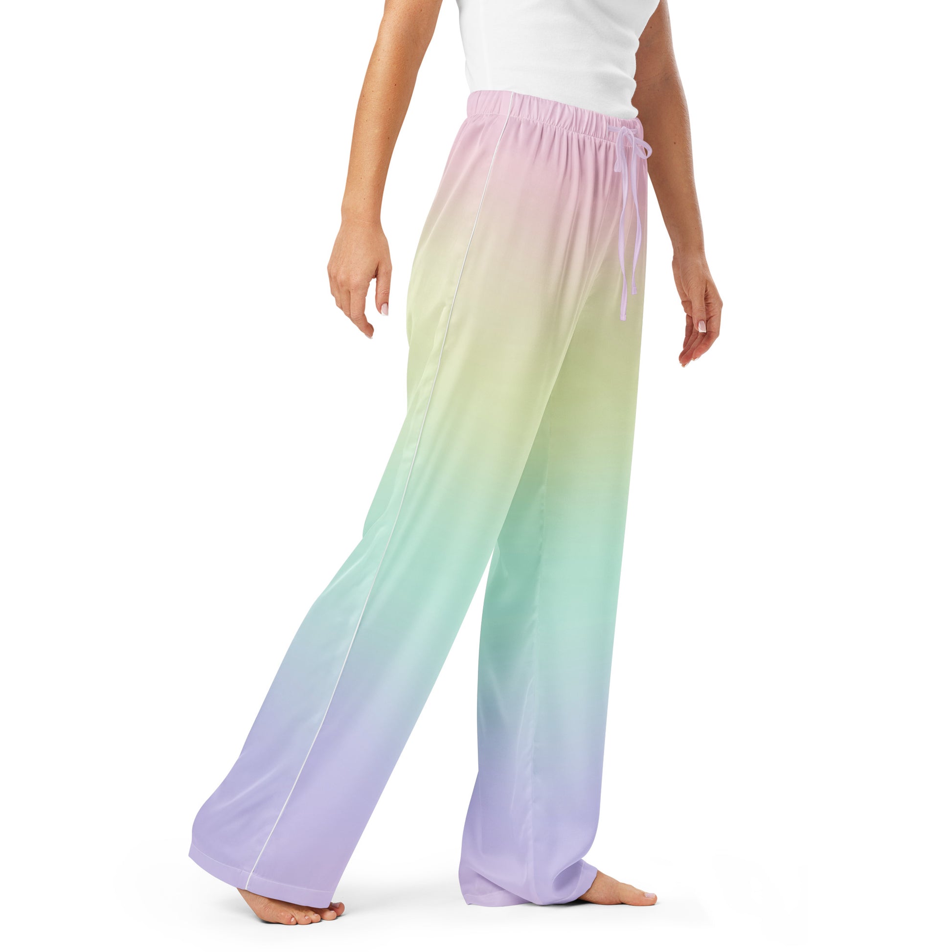 Relax in dreamy style with these women’s pastel ombre pajama pants. Featuring a soft rainbow gradient of pink, mint, aqua, and lavender, they’re perfect for spring lounging, cozy summer nights, or anyone who loves colorful loungewear. The lightweight polyester fabric feels smooth and breathable, while the relaxed straight-leg fit keeps you comfortable day or night. An adjustable drawstring waistband ensures the right fit, and piping along the seams adds a polished finish. A must-have for pastel lovers or anyone who wants pajamas as pretty as they are comfy.