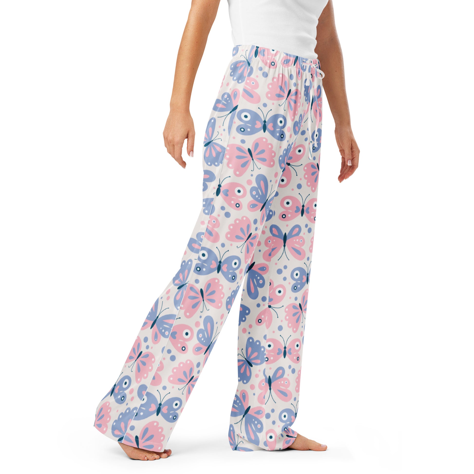 Float into comfort with these women’s butterfly print pajama pants. Featuring a cheerful all-over design of pink and purple butterflies, they’re perfect for spring lounging, cozy nights in, or gifting to anyone who loves playful prints. The lightweight polyester fabric feels smooth and breathable, while the relaxed straight-leg fit gives you room to move. An adjustable drawstring waistband makes it easy to find your perfect fit, and piping along the side seams adds a stylish touch. Cute, cozy, and fun, these pajama pants bring a pop of color to your loungewear collection.