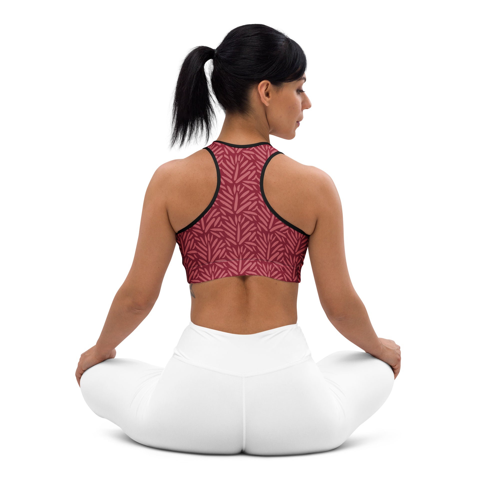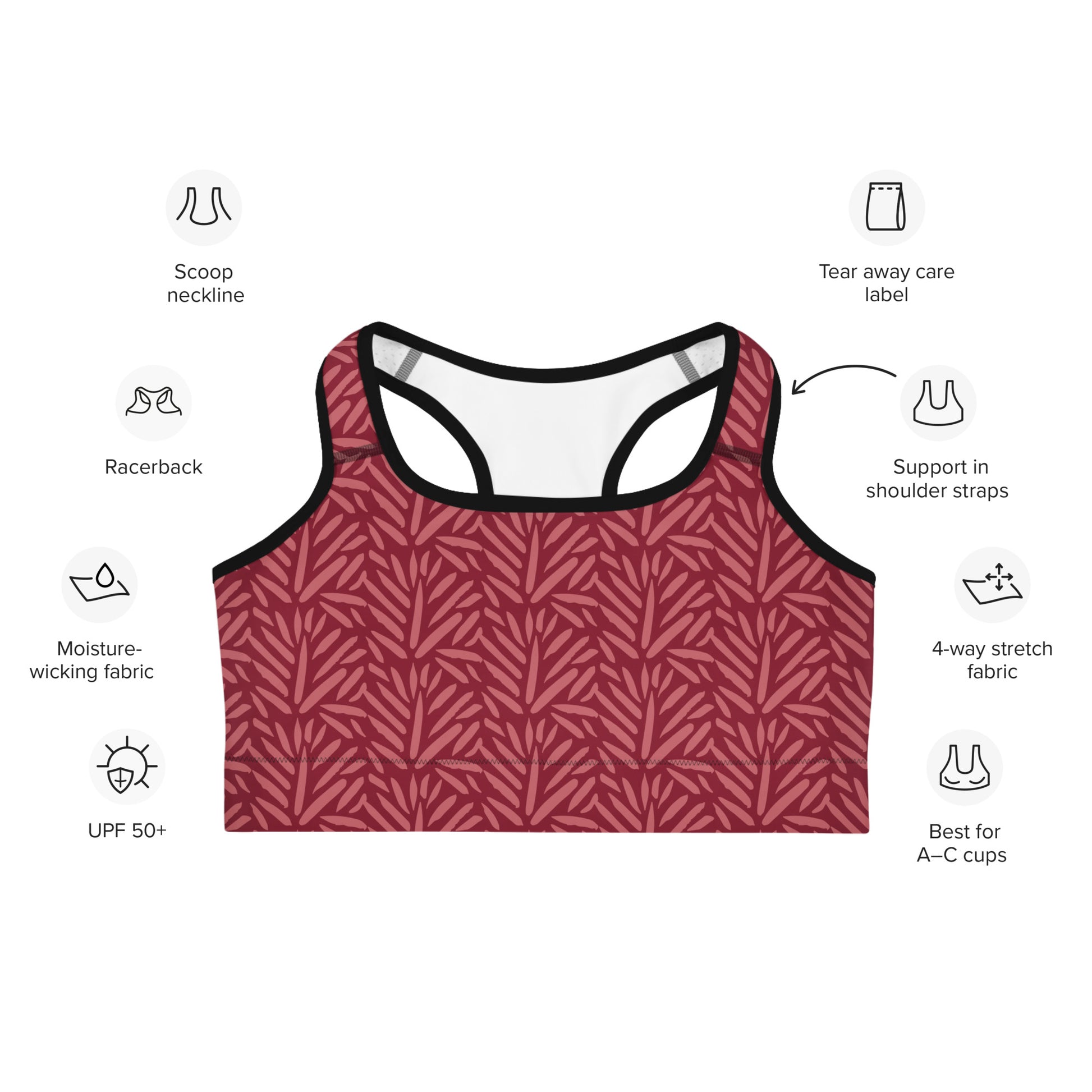 Women's Burgundy Leaf Quick Drying Sports Bra