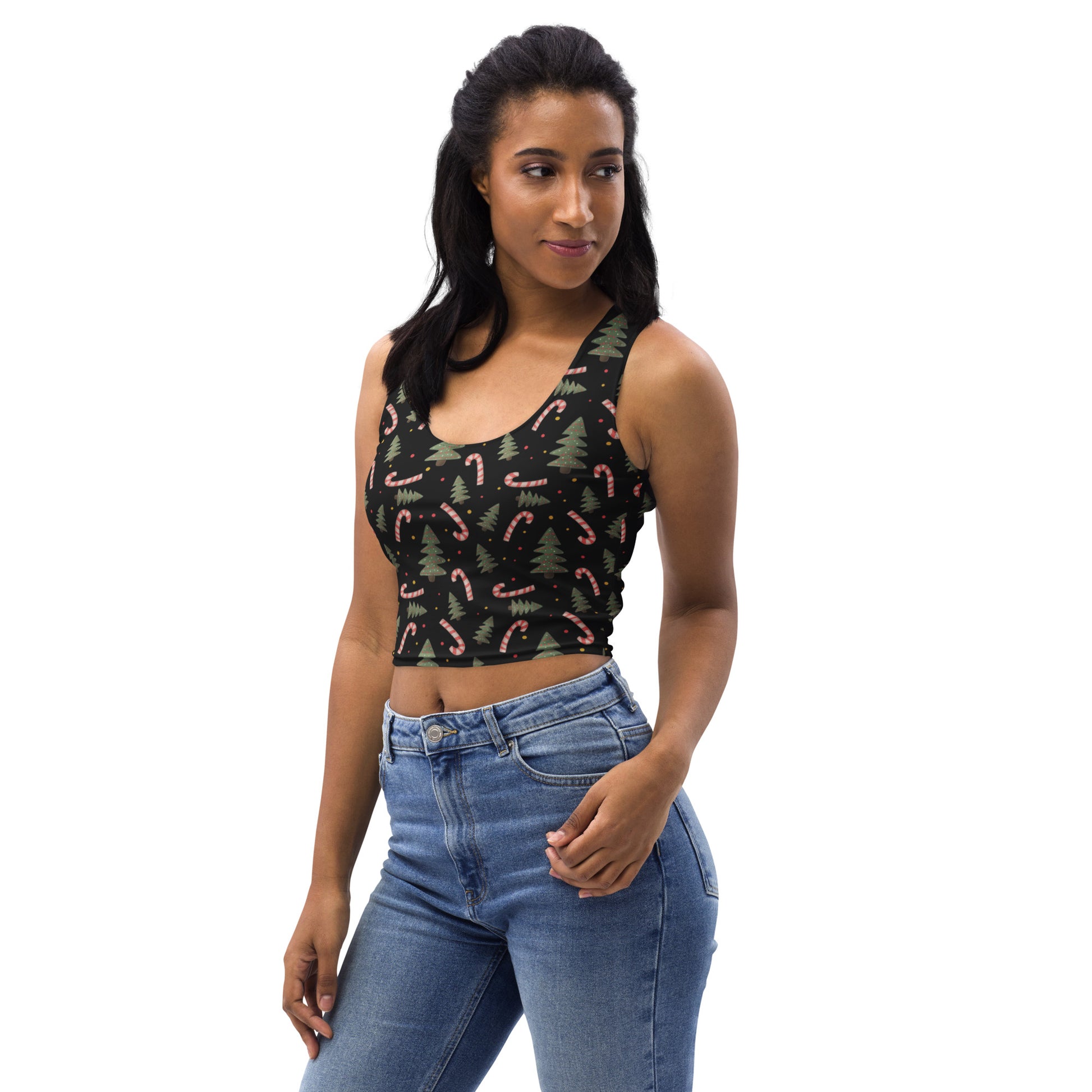 Women's Candy Cane & Christmas Tree Buttery Soft Crop Top