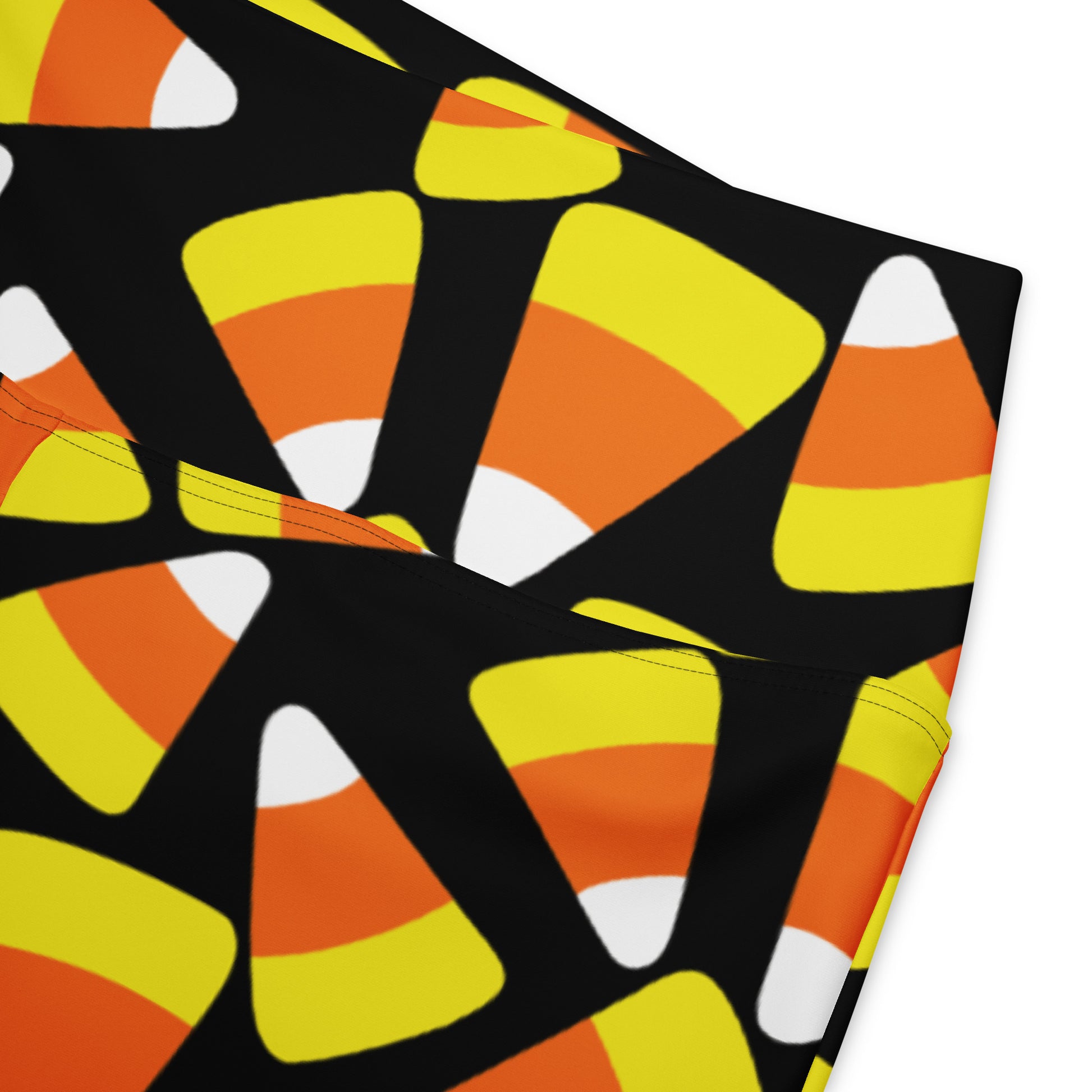 Celebrate spooky season in sweet style with these women’s candy corn Halloween flare leggings. Featuring an all-over print of vibrant orange, yellow, and white candy corn on a black background, they’re a playful nod to everyone’s favorite fall treat. The high-rise waistband smooths and supports, while retro-style flared bottoms add a trendy touch. Perfect for Halloween parties, trick-or-treating, or cozy fall nights, these leggings are festive, fun, and comfy all in one.