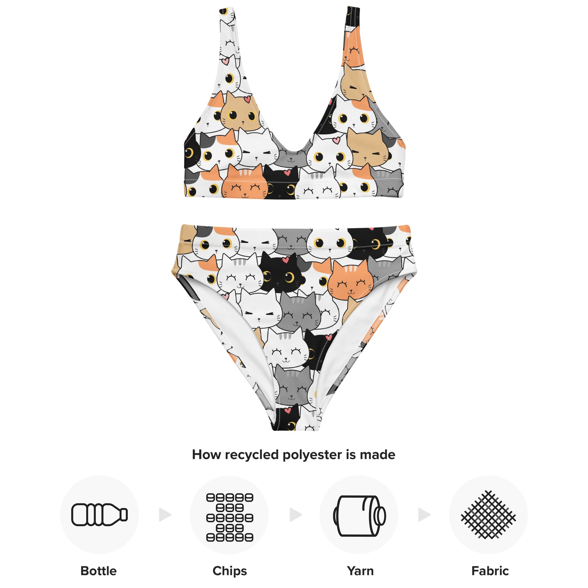 Made from a blend of recycled polyester and LYCRA®, this double-layered swimsuit is soft, stretchy, and quick drying. Whether you're sunbathing, swimming, or snapping selfies, this cat-lover’s dream bikini is ready to make a splash—with UPF 50+ protection to boot.