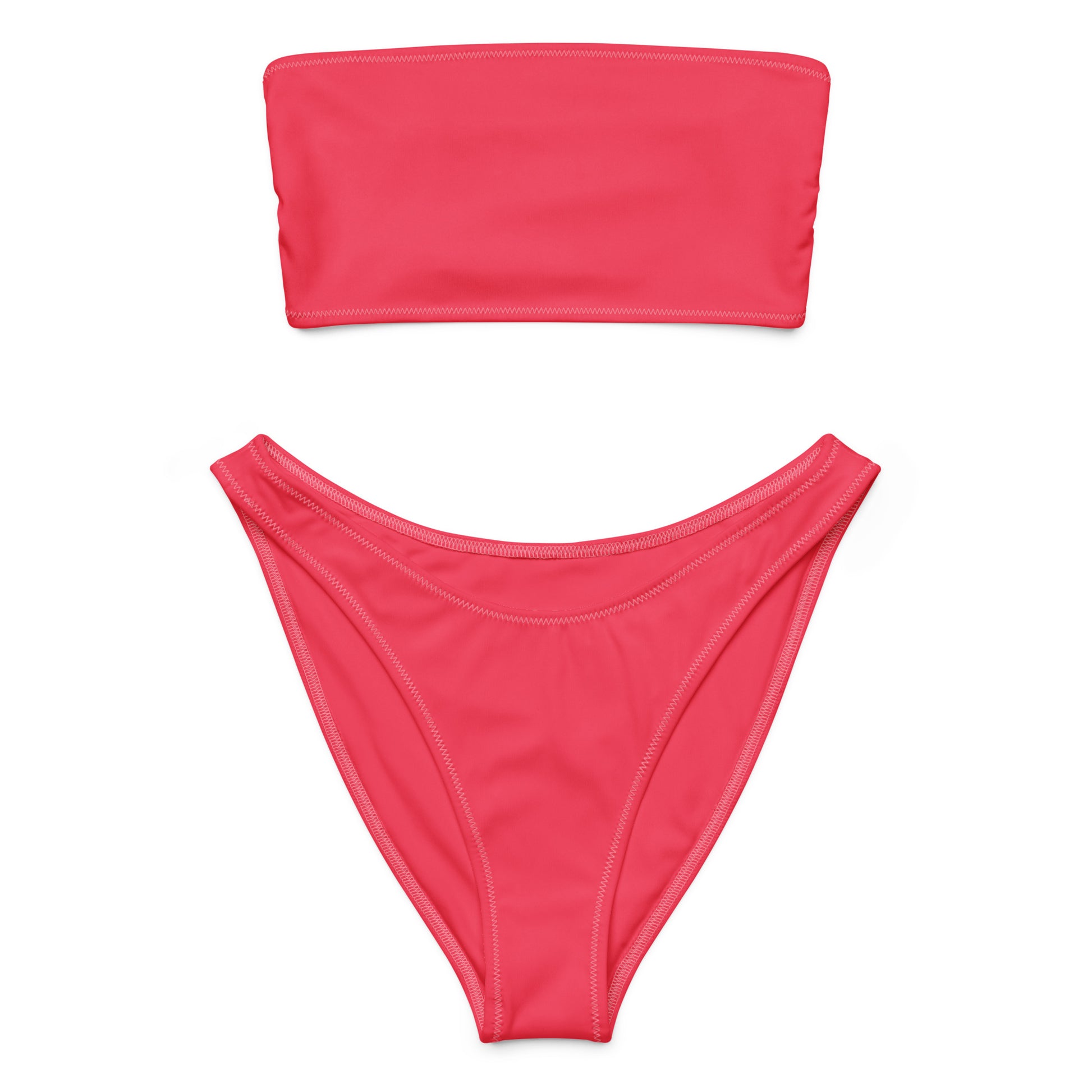 Women's Crimson Pink Recycled Bandeau Bikini - Quick Drying Fabric With UPF 50+