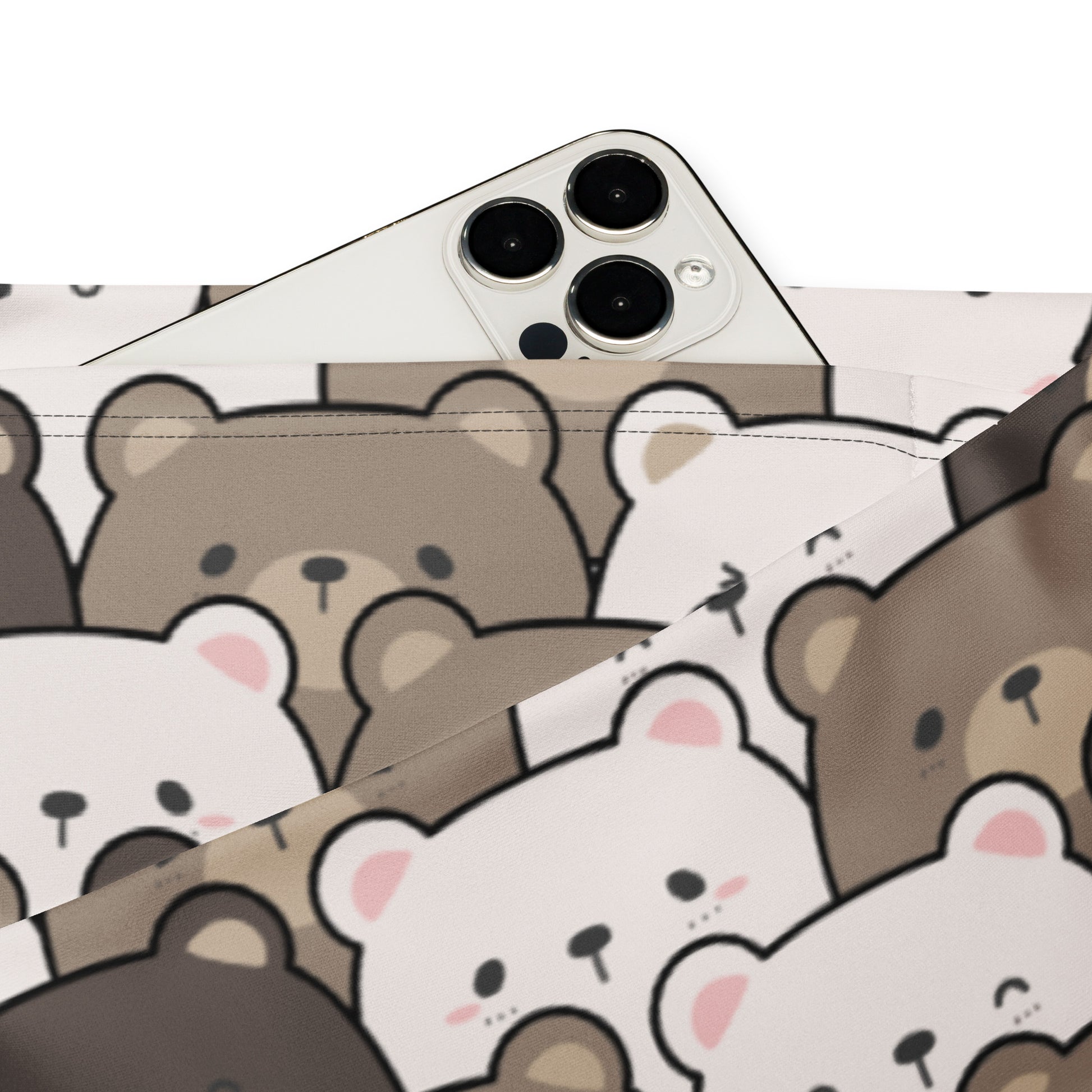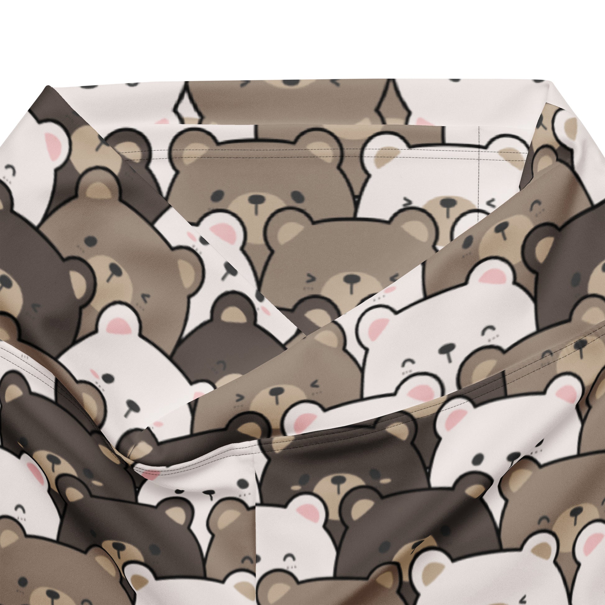 Bring playful charm to your wardrobe with these women’s bear print flare leggings. Featuring an all-over pattern of kawaii bear faces in neutral tones, they’re a fun yet versatile statement piece. The high-rise waistband smooths and flatters, while the retro-inspired flare bottoms add a trendy, leg-lengthening touch. Perfect for lounging, yoga, or casual streetwear, these leggings combine comfort with irresistibly cute style.