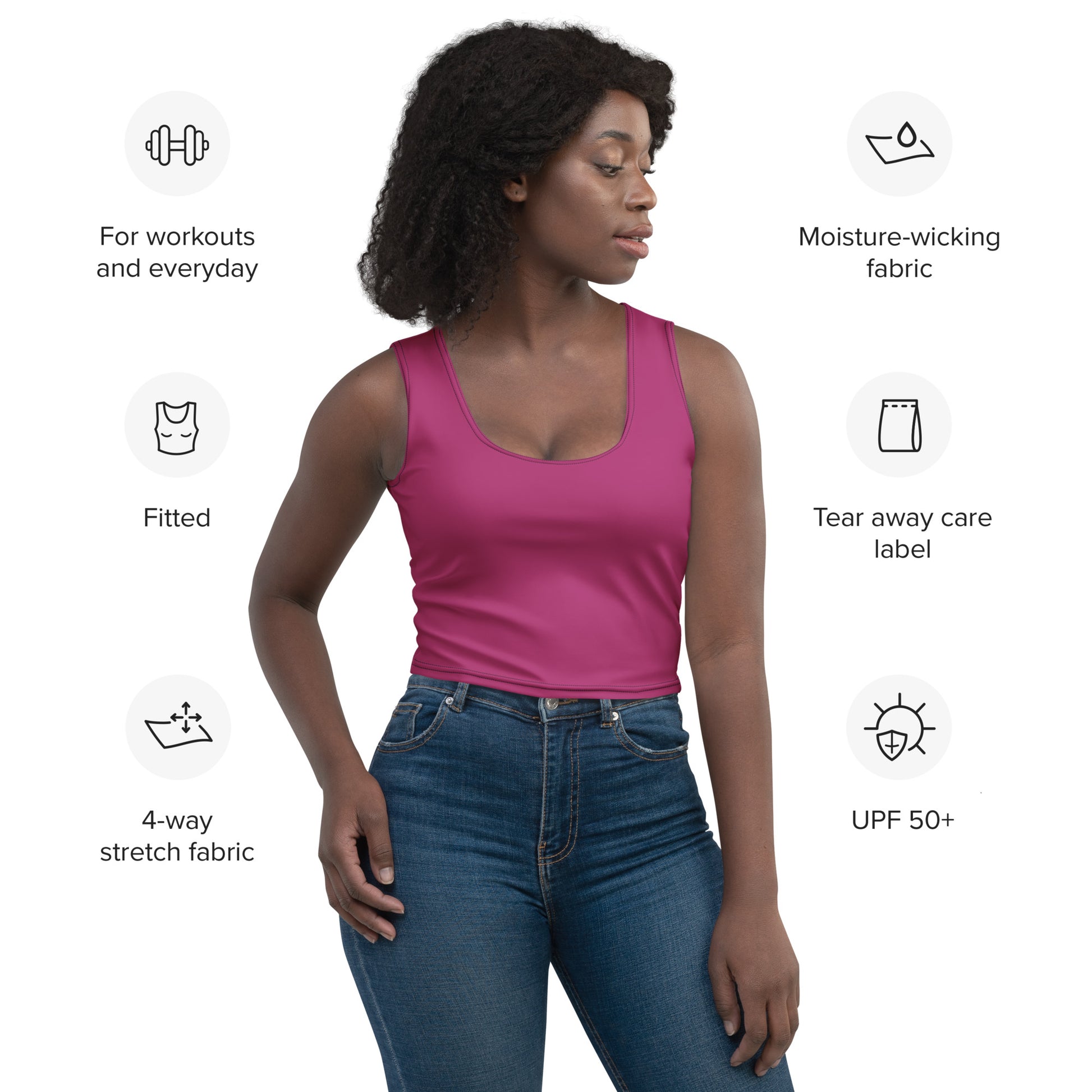 Made from buttery-soft microfiber with four-way stretch, this deep pink crop tank top moves with you while holding its shape. Pair it with jeans, leggings, or shorts for an effortless look that transitions from the gym to the street.