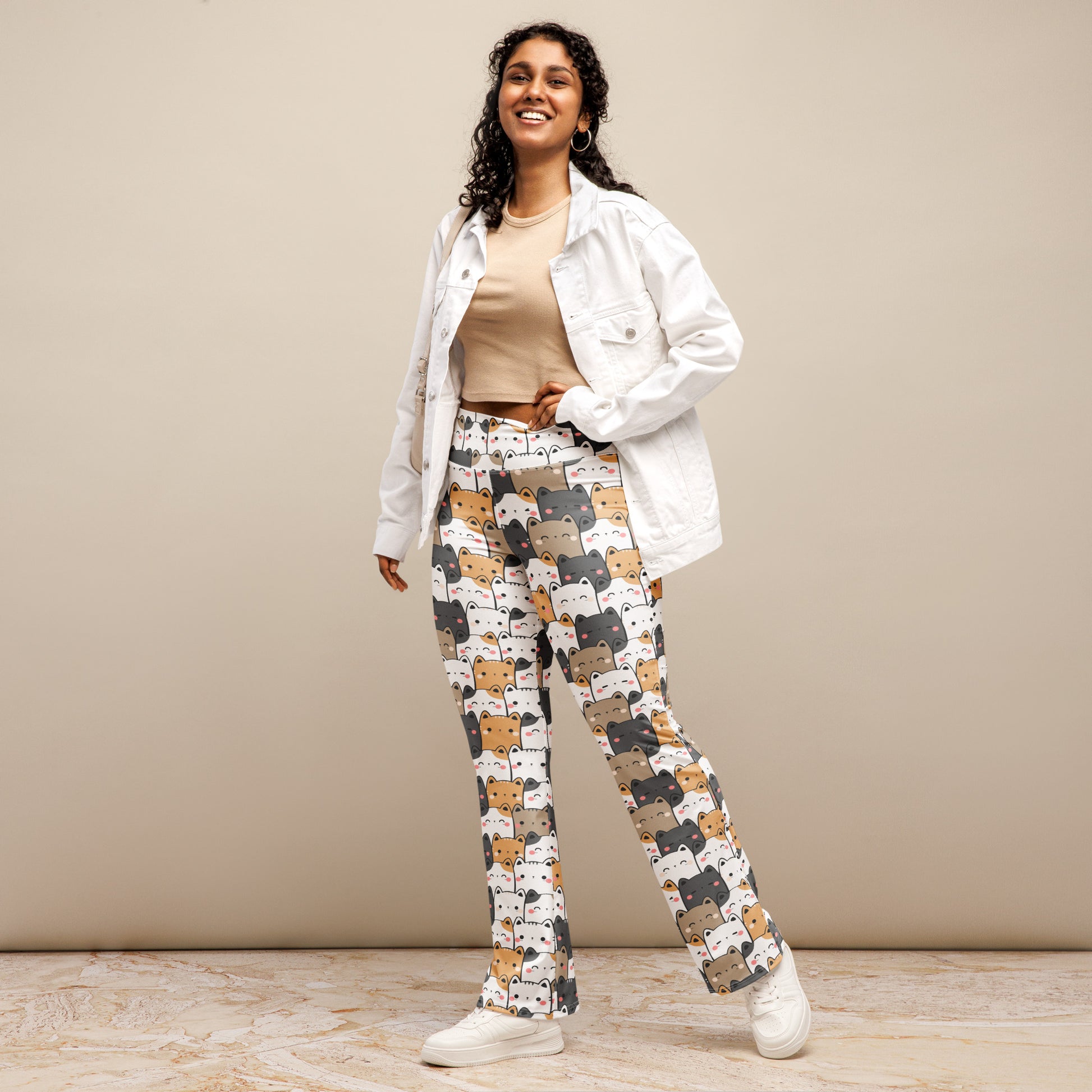 Women's Kawaii Cat High Waist Flare Legging Pants