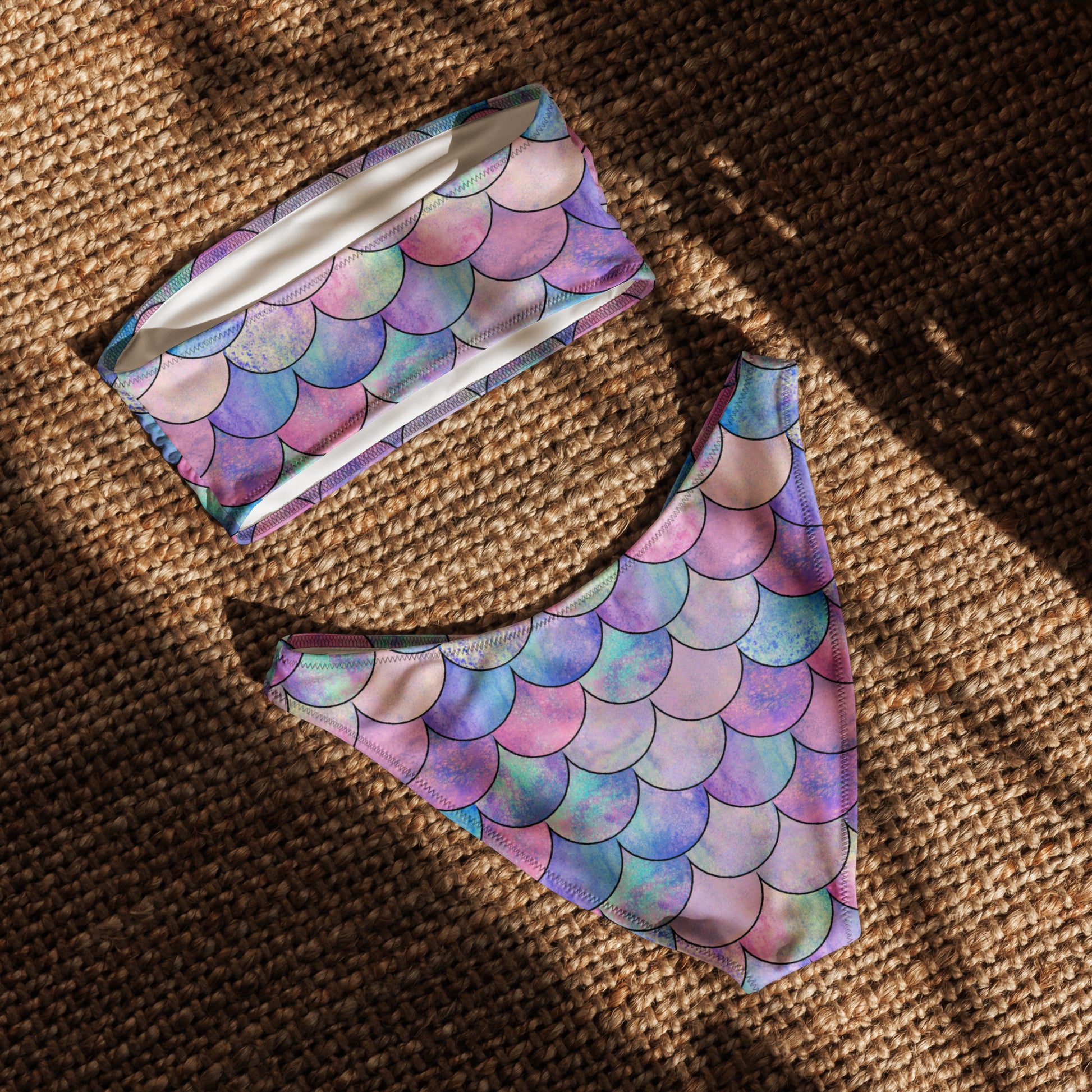 Women's Mermaid Scale Recycled Bandeau Bikini - Quick Drying Fabric With UPF 50+