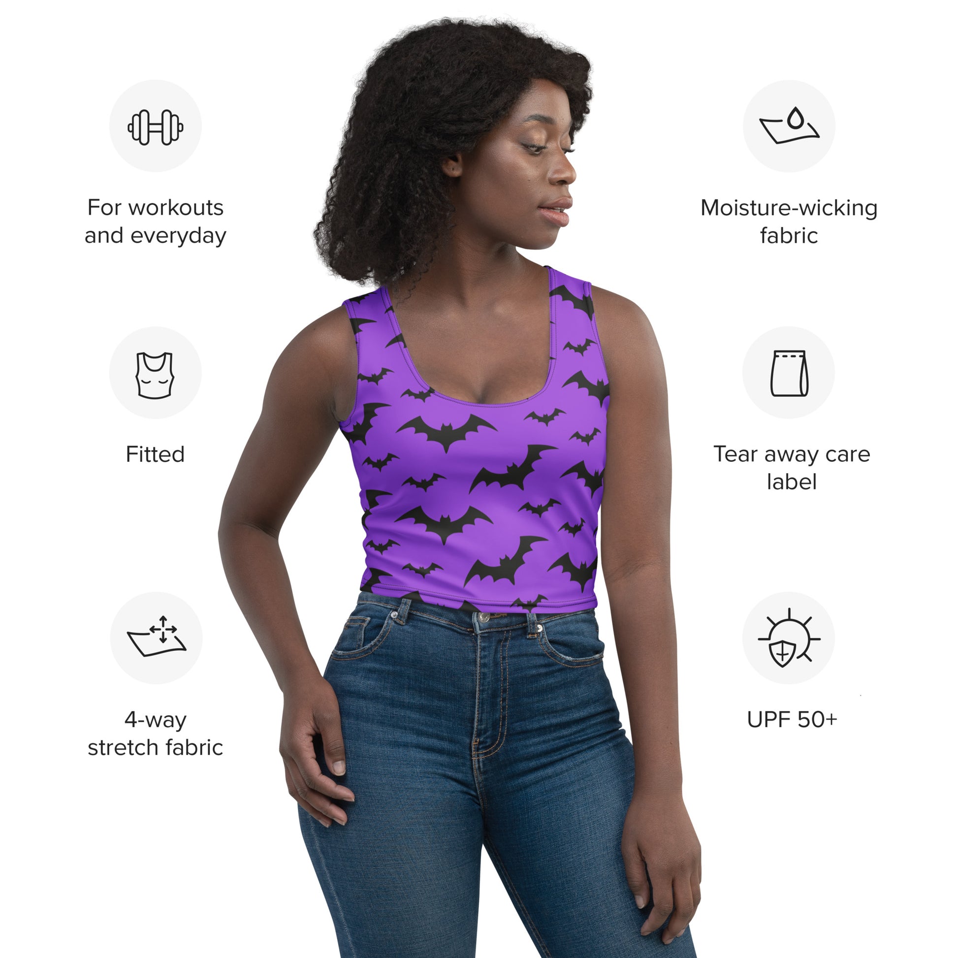 Whether you’re dancing at a festival, trick-or-treating, or just love spooky fashion, this women’s bat crop top makes Halloween style effortless and eye-catching.