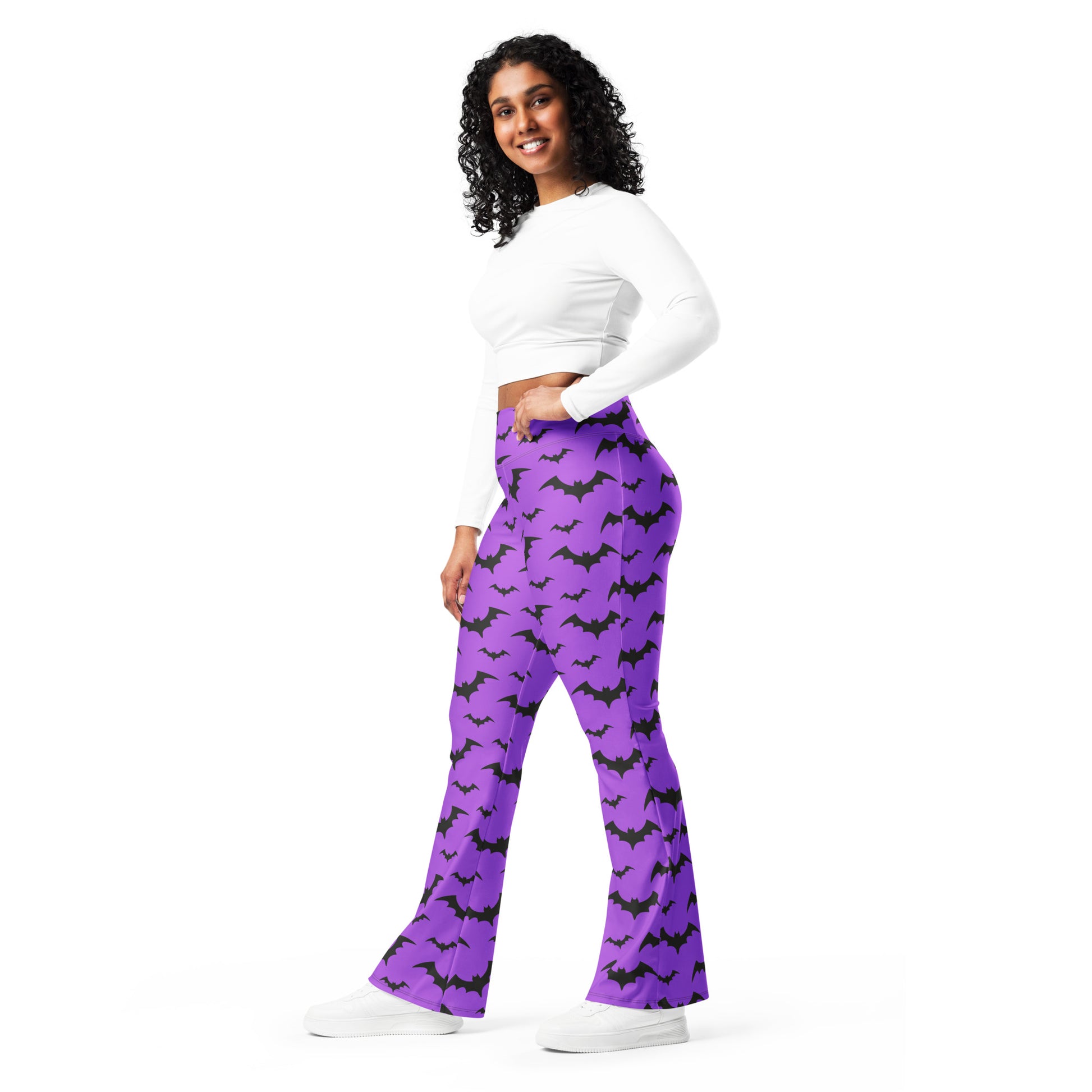 Women's Purple Bats Halloween High Waist Flare Legging Pants