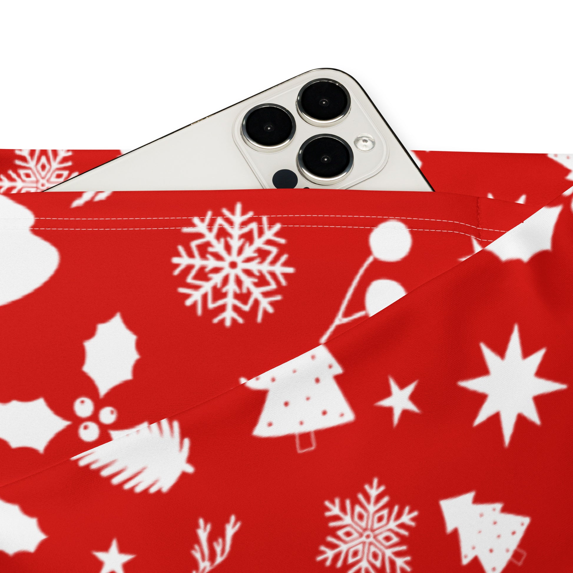 Step into holiday cheer with these women’s red Christmas flare leggings. Featuring a playful all-over print of reindeer, snowflakes, candy canes, and more, they’re the ultimate festive statement piece. The high-waisted fit smooths and supports, while the retro-inspired flared bottoms add chic winter style. Perfect for Christmas parties, cozy movie nights, or casual winter outings, these leggings combine comfort, trend, and holiday spirit.