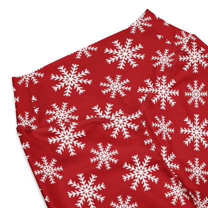 Celebrate the season in style with these women’s red snowflake flare leggings. Featuring an all-over white snowflake pattern on a festive red background, they’re the perfect holiday staple. The high-waisted fit smooths and supports, while the flared bottoms add a trendy retro twist. Ideal for Christmas parties, cozy nights by the fire, or festive winter streetwear, these leggings bring holiday cheer wherever you go.
