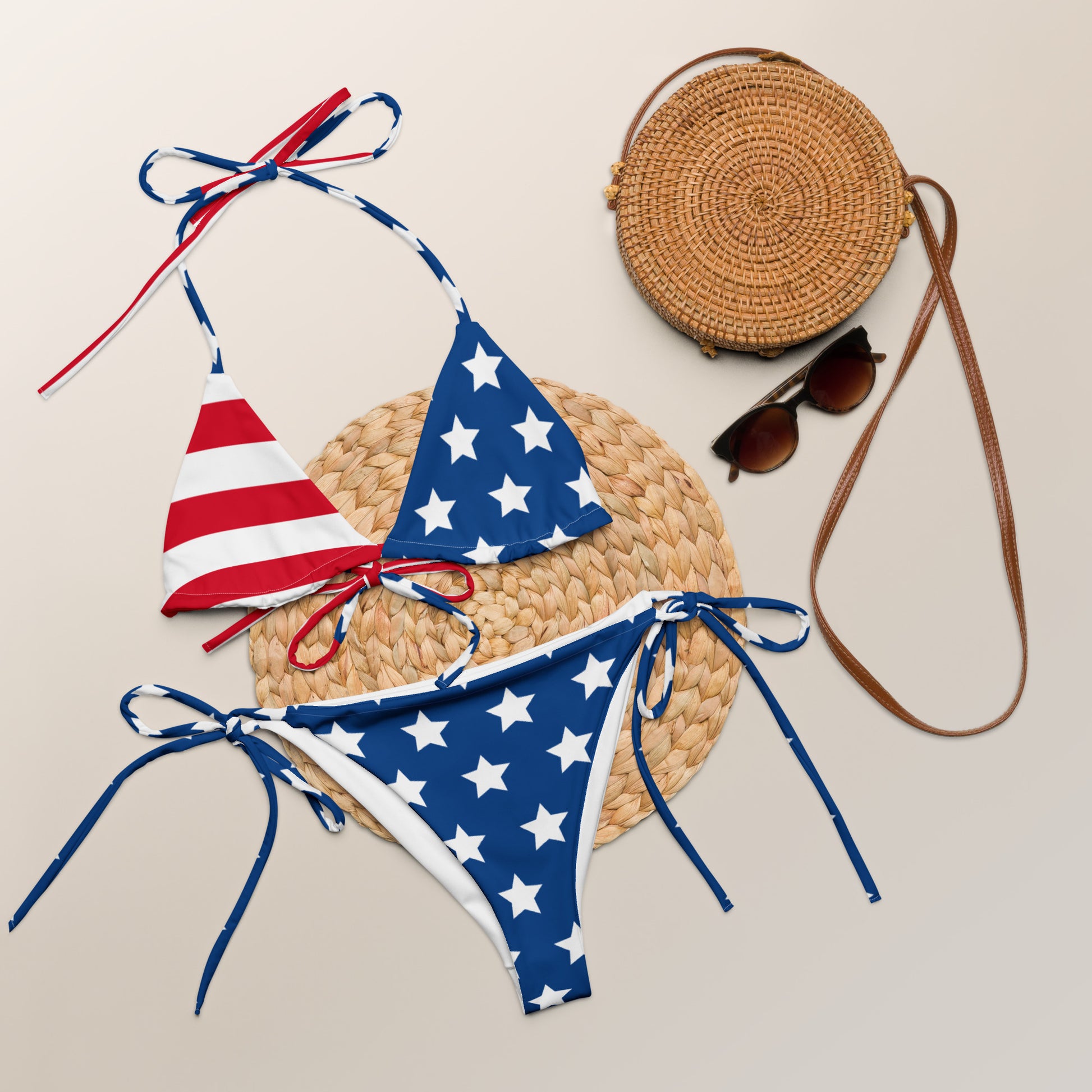 Women's USA Flag Buttery Soft Recycled String Bikini With UPF 50+